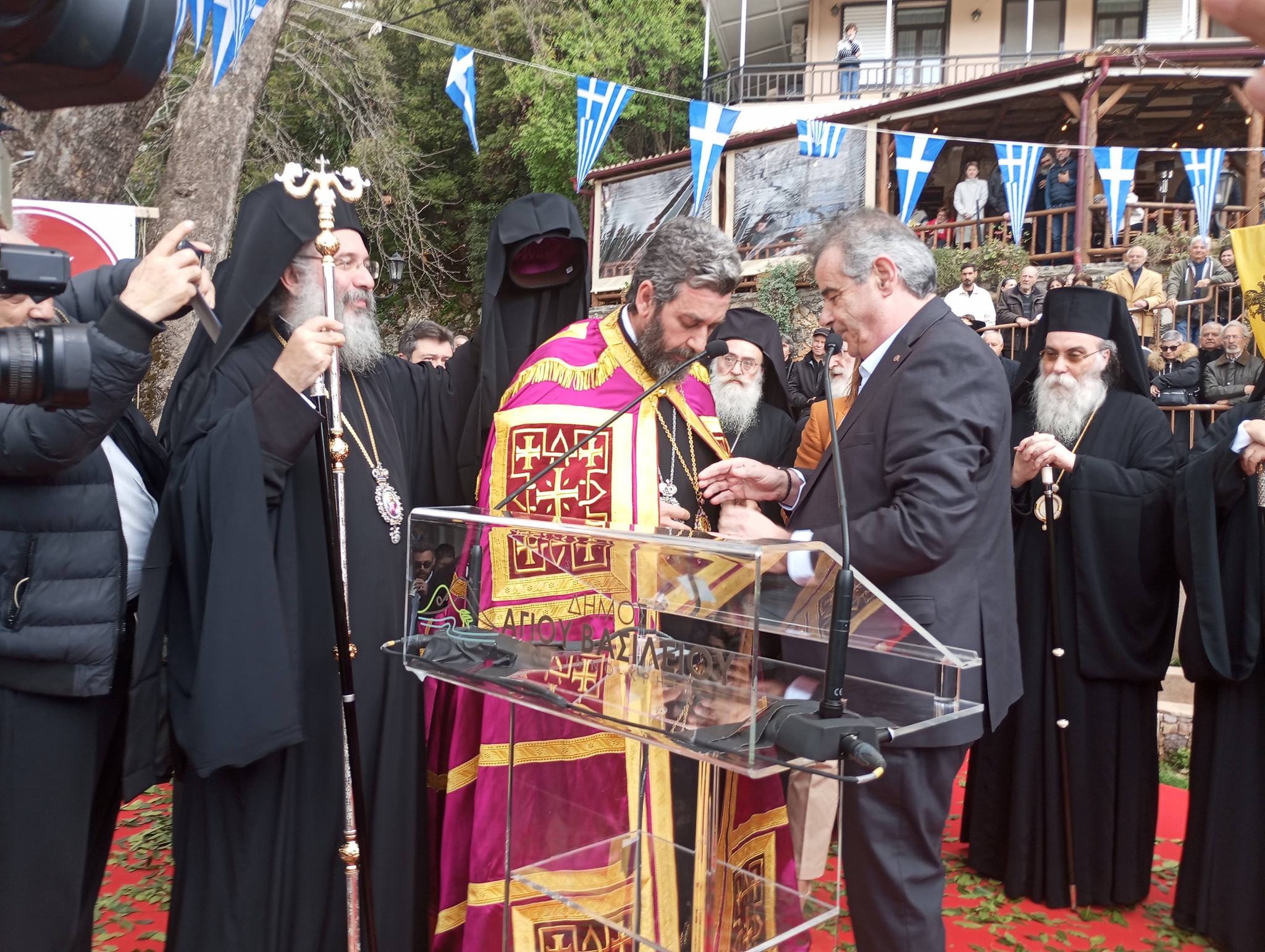 Η τελετή ξεκίνησε από την πλατεία του Σπηλίου όπου ο Δήμαρχος Δήμου Αγίου Βασιλείου κ. Γιάννης Ταταράκης υπόδέχτηκε επίσημα τον νέο Μητροπολίτη, τον οποίο συνοδεύουν ο Αρχιεπίσκοπος Κρήτης κ. Ευγένιος και οι Μητροπολίτες της Εκκλησίας της Κρήτης.