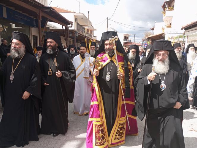 Στη συνέχεια πραγματοποιηθηκε πομπή προς τον Ιερό Μητροπολιτικό Ναό Αγίου Αποστόλου Παύλου, όπου τελέστηκε η ακολουθία της ενθρόνισης.