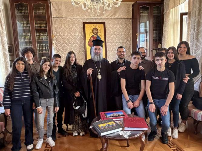 Τους μαθητές του Γυμνασίου Ζαρού υποδέχθηκε με χαρά ο Σεβασμιώτατος, στο γραφείο του, ευχόμενος στους εκπαιδευτικούς και στα παιδιά πλούσια τη χάρη και την ενίσχυση του Θεού στο έργο τους και επίτευξη των στόχων και των προσδοκιών τους, καθώς και καλό Άγιο Πάσχα.