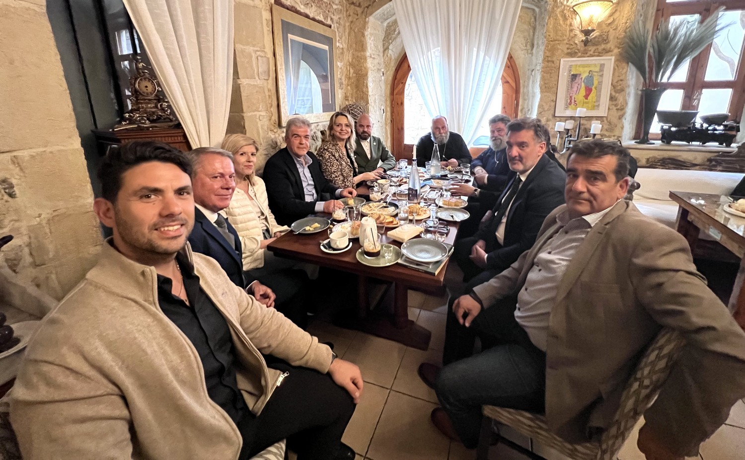 Το συντονισμό της επίσκεψης ανέλαβε ο Σύλλογος Ξενοδόχων Ν. Ρεθύμνης, με πρωτοβουλία του νέου Προέδρου του κ. Νίκου Κουμνά ενώ τους θεσμικούς μας επισκέπτες υποδέχθηκαν θερμά: η Αντιπεριφερειάρχης Ρεθύμνου κα Μαίρη Λιονή, ο Περιφερειακός Σύμβουλος κ. Μιχάλης Βάμβουκας, ο Αντιδήμαρχος Δ.Ρ κ. Δημήτριος Λελεδάκης (εκτελών χρέη Δημάρχου), ο κ. Κωνσταντίνος Γασπαράκης (Εντεταλμένος Σύμβουλος Τουρισμού και Πρόεδρος Επιτροπής Τουριστικής Ανάπτυξης και Προβολής, Δήμου Ρεθύμνης), καθώς και εκπρόσωποι του τουριστικού και ξενοδοχειακού κλάδου, όπως η Αντιπρόεδρος κα Πέπη Μπιρλιράκη και ο επίτιμος Πρόεδρος κ. Εμμανουήλ Τσακαλάκης του Συλλόγου Ξενοδόχων Ν. Ρεθύμνου, ο Πρόεδρος του Σωματείου Επαγγελματιών Ξεναγών Κρήτης - Σαντορίνης και μέλη του Συλλόγου Ξεναγών Ρεθύμνης.