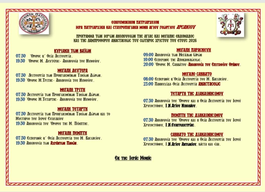 Επισυνάπτεται το πρόγραμμα που εκδόθηκε από το Ιστορικό Μοναστήρι: