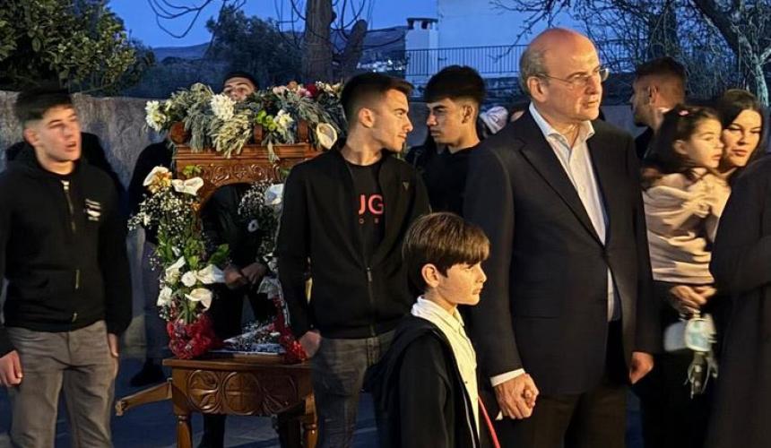 Την ακολουθία του Επιταφίου παρακολούθησε στο χωριό του, τον Άη Γιάννη Μυλοποτάμου, ενώ σε ανάρτησή του ανέφερε με συγκίνηση ότι θυμάται τα παιδικά του χρόνια και τους γονείς του, ευχόμενος Καλή Ανάσταση.