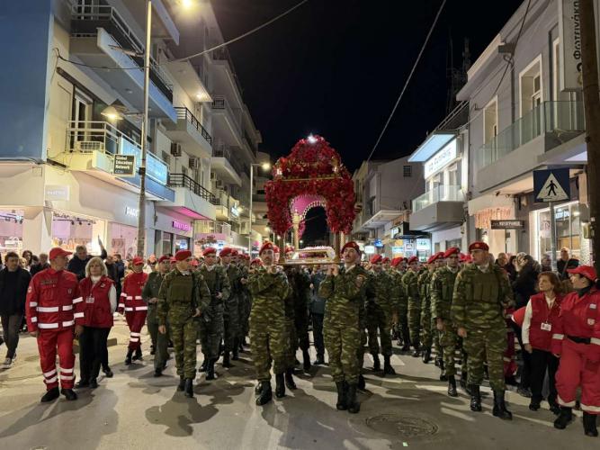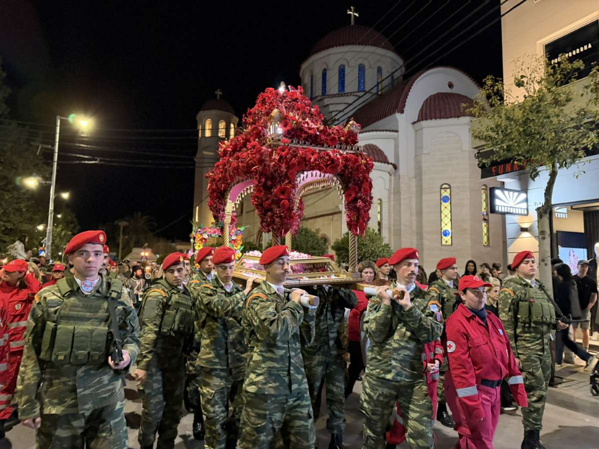 Συγκινητική και ιδιαίτερη υπήρξε η στιγμή της Επιμνημόσυνης Δέησης, εντός της ιστορικής Σχολής Αστυφυλάκων Ρεθύμνου, κατά τη διάρκεια της λιτανεύσεως του Ιερού Επιταφίου.