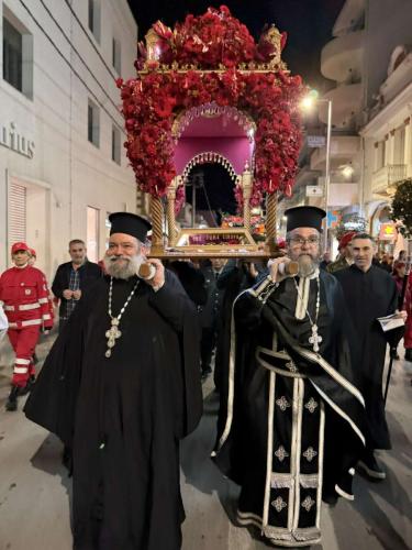 Ο Σεβασμιώτατος προέτρεψε τους πολυπληθείς προσκυνητές να εντείνομε την προσευχή μας αυτή τη βραδυά για όλα τα παιδιά του κόσμου, για την κατάπαυση των πολέμων και των αδικιών και να μη φοβηθούμε ποτέ κανένα σταυρό της ζωής μας, προσβλέποντας στην Ανάσταση.