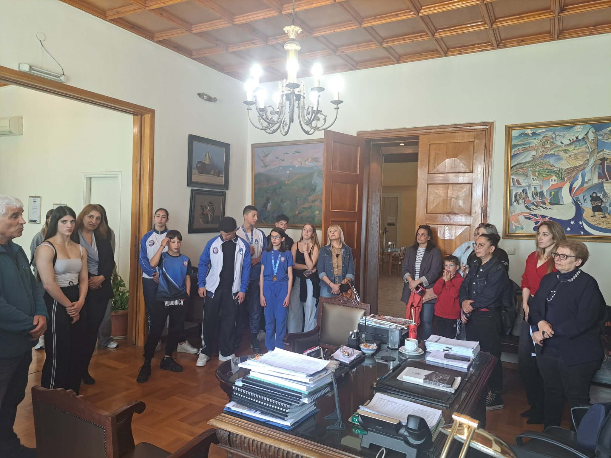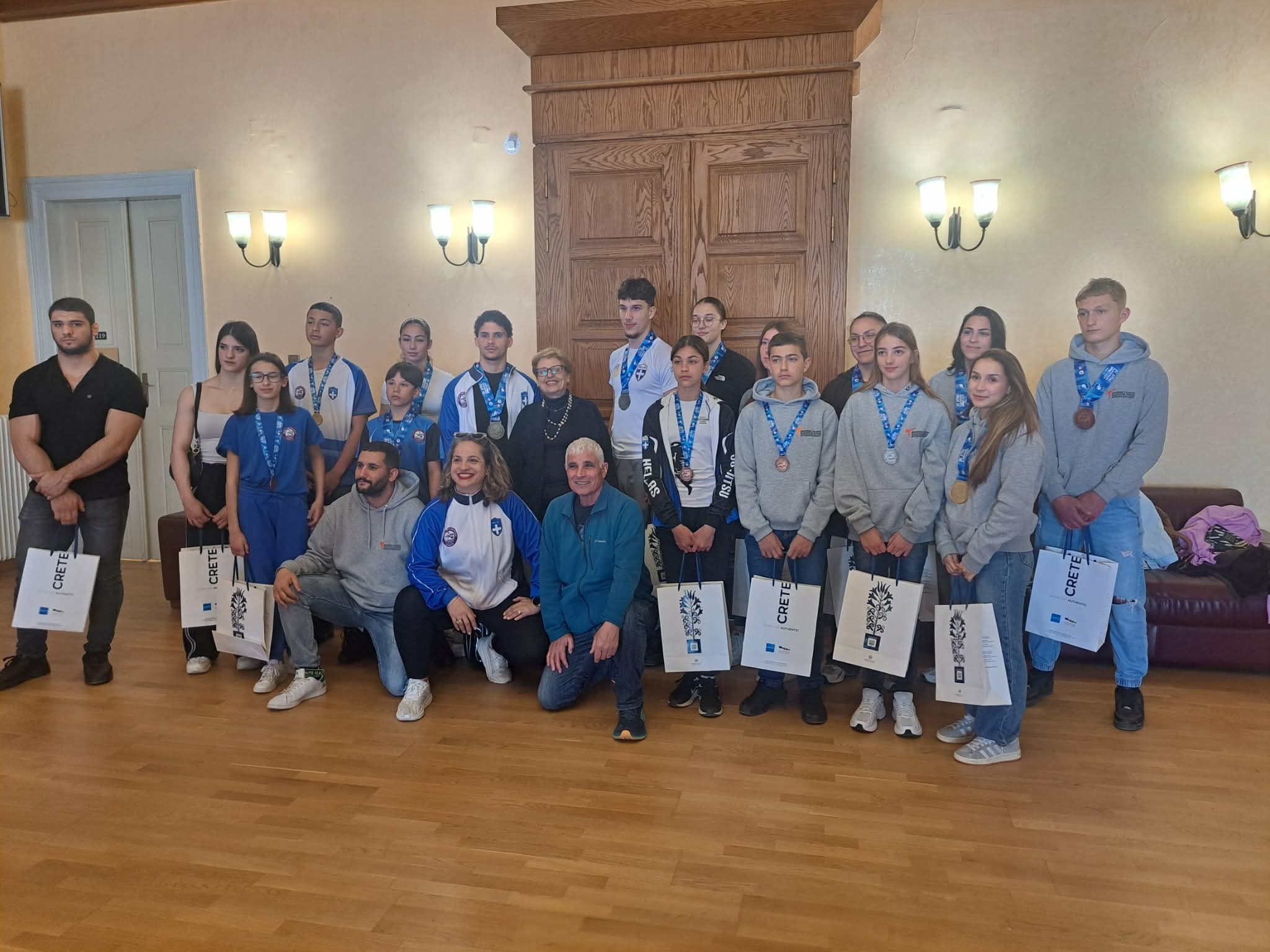 Τους Ρεθεμνιώτες αθλητές & αθλήτριες του Ζίου - Ζίτσου και της Πάλης που διακρίθηκαν στα ευρωπαϊκά πρωταθλήματα υποδέχτηκε σήμερα στην έδρα της Π.Ε. Ρεθύμνης η Αντιπεριφερειάρχης Μαρία Λιονή