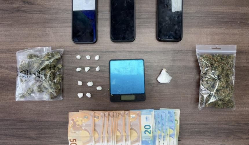 Κατασχέθηκαν -12- συσκευασίες που περιείχαν συνολικά -8,9- γραμμάρια κοκαΐνης ,-80- γραμμάρια κάνναβης ,ζυγαριά και χρηματικό ποσό -690- ευρώ.