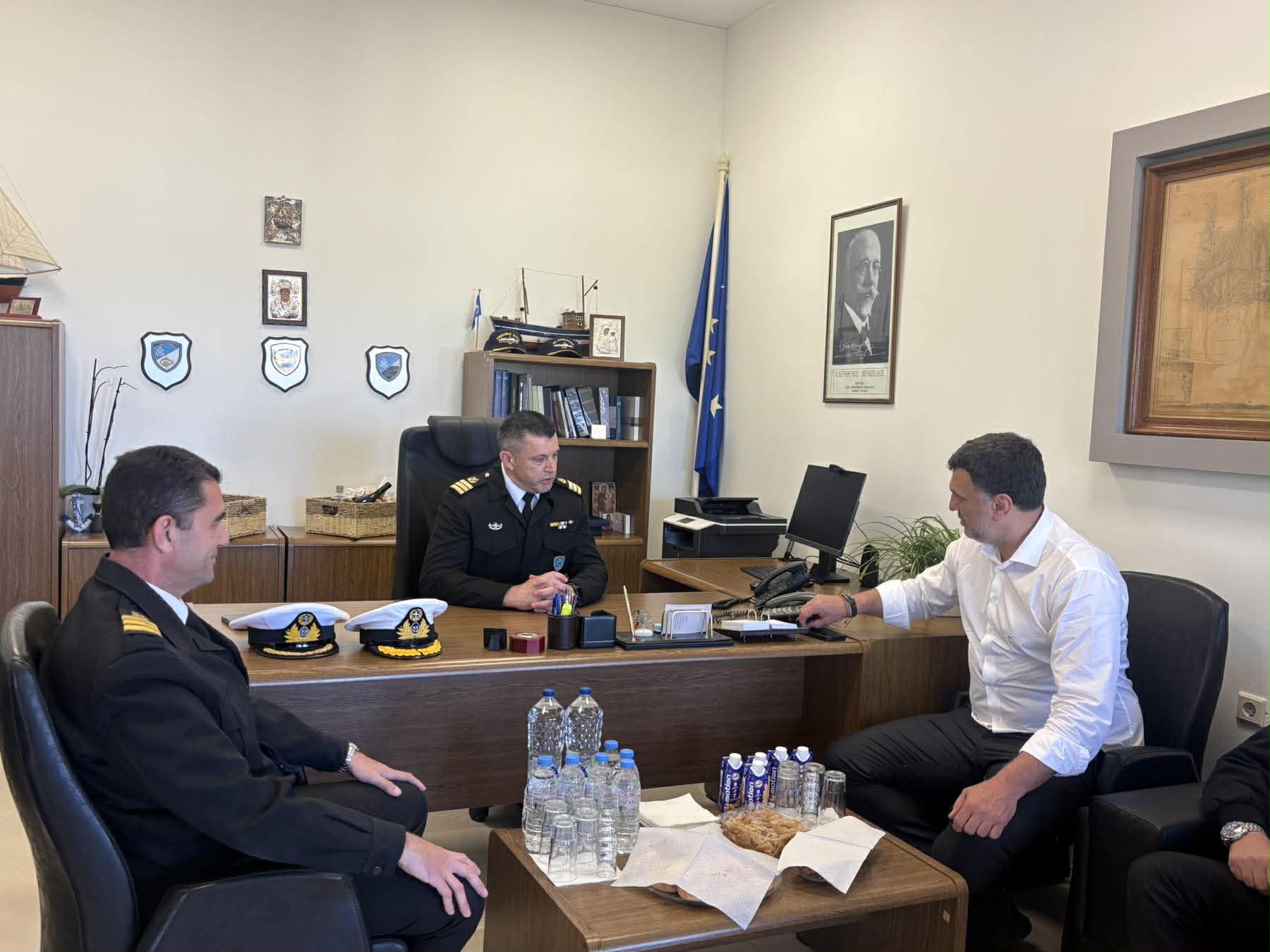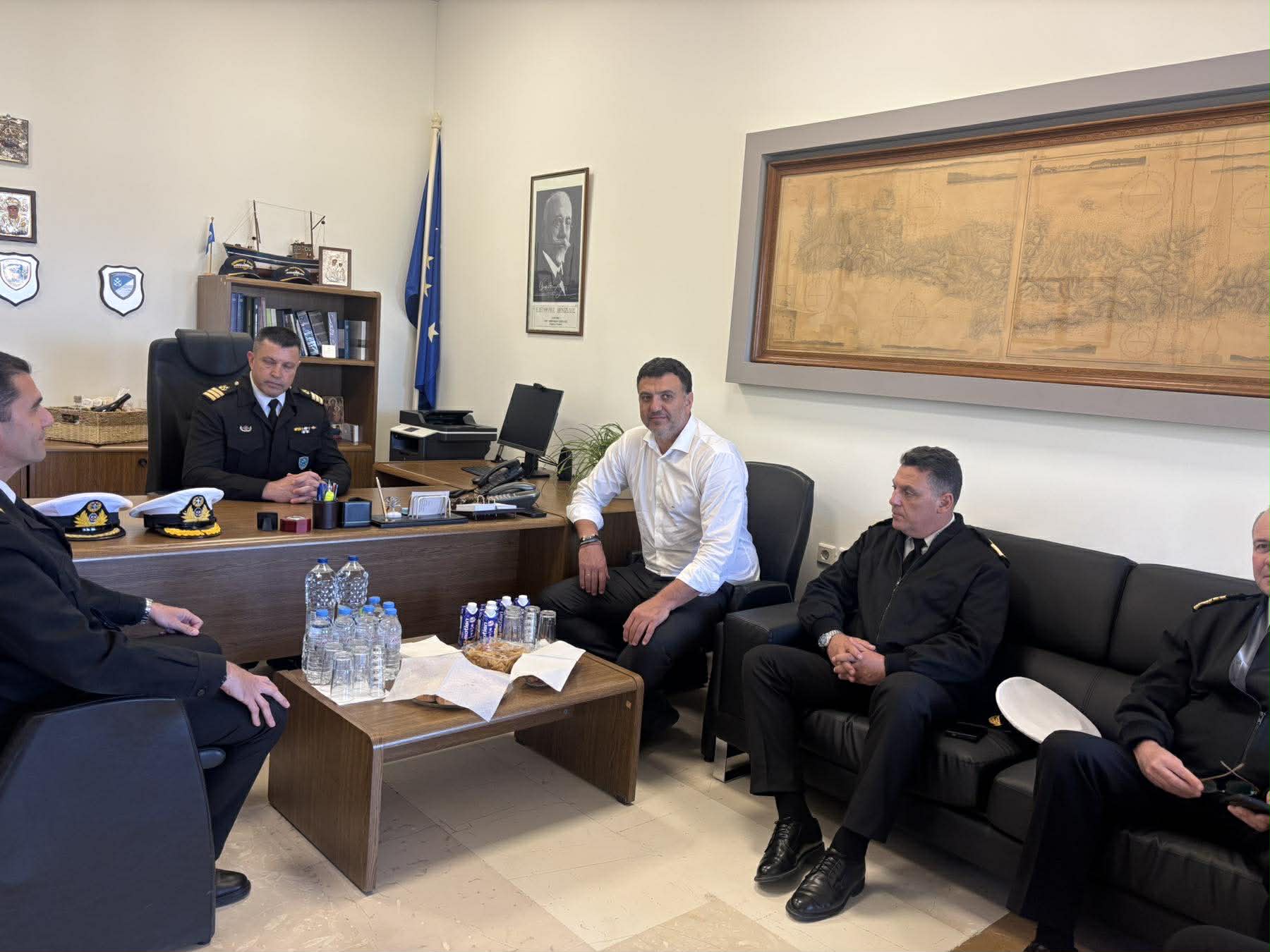 Κατά τη διάρκεια της επίσκεψης πραγματοποιήθηκε σύσκεψη, στην οποία συμμετείχαν ο Περιφερειακός Διοικητής Κρήτης, Γιάννης Ορφανός, ο Λιμενάρχη Ρεθύμνου, Κυριάκος Παττακός, ο Υπολιμενάρχης Ρεθύμνου Στέλιος Ζαχαριουδάκη, ο Λιμενάρχης Αγίας Γαλήνης, Αντώνης Σαραντουλάκης και στελέχη του Λιμενικού Σώματος.