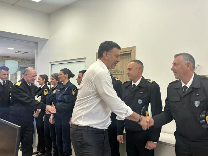 Ο Υπουργός Ναυτιλίας Βασιλης Κικίλιας έφτασε νωρίτερα στο Λιμεναρχείο Ρεθύμνου, συνοδευόμενος από τον Αρχηγό του Λιμενικού Σώματος Χρήστο Κοντορουχά.