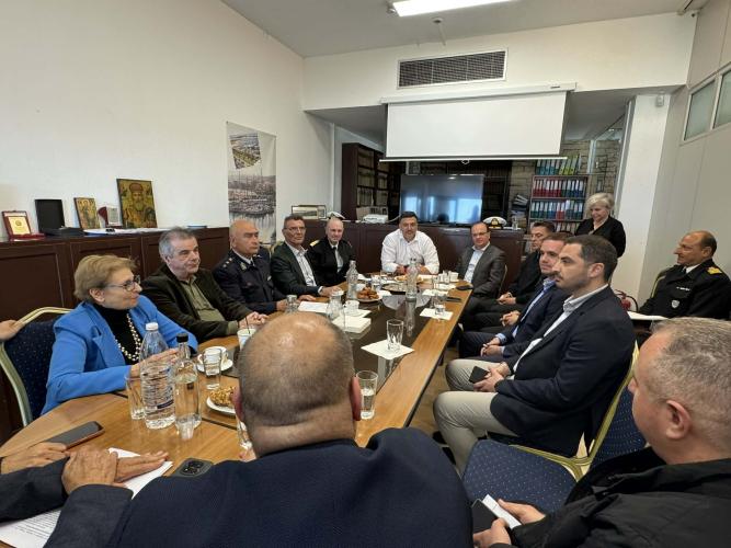 Νωρίτερα ο υπουργός πραγματοποίησε ξεχωριστή σύσκεψη με τον Λιμενάρχη Ρεθύμνου, Κυριάκο Παττακό παρουσία στελεχών του Λιμενικού Σώματος, αλλά και συνάντηση με το προσωπικό του Λιμενικού Σώματος.