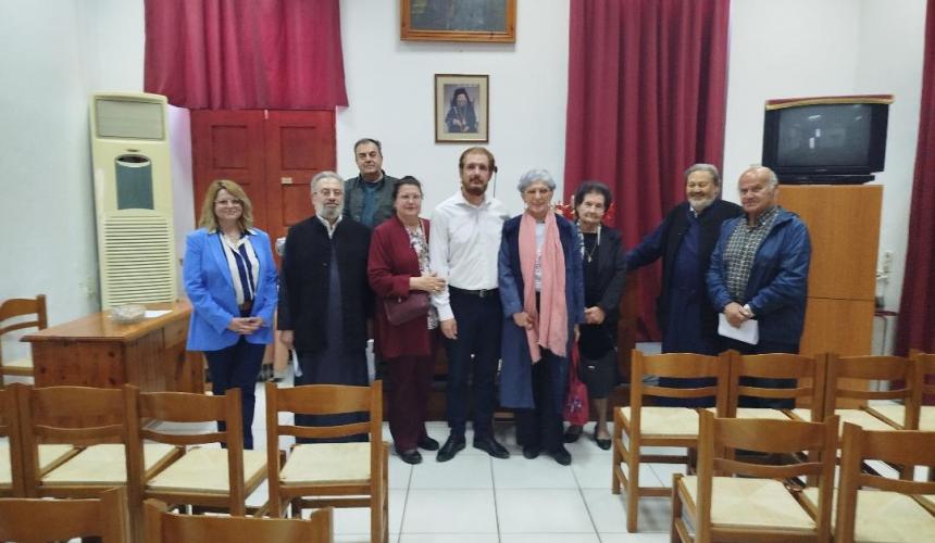 Ο γνωστός φιλόλογος κ. Γεώργιος Μαυροτσουπάκης διάβασε το βιογραφικό του ομιλητή. και κατόπιν ακολούθησε από τον ομιλητή η παρουσίαση του θέματος. Ο ίδιος με τον λόγο του μας μετέφερε σε εποχές δύσκολες για τον Χριστιανισμό, τότε που προσπαθούσε να ριζώσει εν μέσω διωγμών για να διαδοθεί το ελπιδοφόρο και σωτήριο μήνυμα του Ιησού Χριστού στην Οικουμένη. Αναφέρθηκε σ το χωρίο του Ευαγγελίου του Ιωάννη στο οποίο οι Έλληνες ήλθαν στον Ιησού για να ακούσουν το σωτήριο μήνυμά του και στη φράση του ιδίου : ‘’ ελήλυθεν η ώρα , ίνα δοξασθή ο Υιός του Ανθρώπου. Μίλησε για τoν Απόστολο Παύλο και τη δράση του στην Αθήνα, στη συνομιλία του με τους Έλληνες φιλοσόφους στον Άρειο Πάγο, στον εκχριστιανισμό του Αγίου Διονυσίου του Αρεοπαγίτη και Πολιούχου των Αθηνών, της Δαμάρεως, του Τιμόθεου, του Τίτου, του Λουκά και λοιπών Ελλήνων που έγιναν χριστιανοί. Αναφέρθηκε στον Ιουστίνο που περισσότερο από όλους τους απολογητές χριστιανούς της εποχής του, ενεθάρρυνε τη συνάντηση και τον εναρμονισμό της ελληνικής φιλοσοφίας με τον Χριστιανισμό.