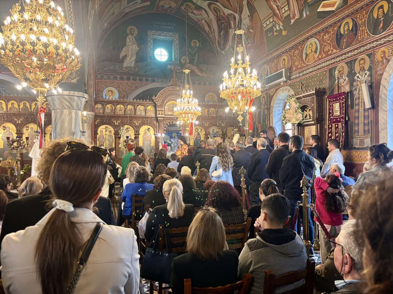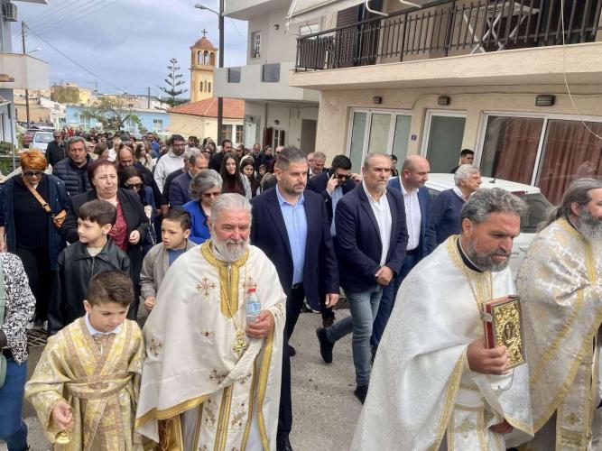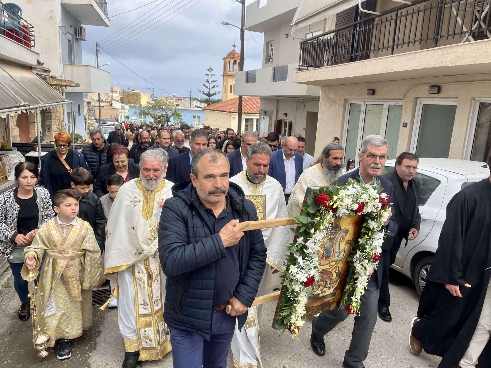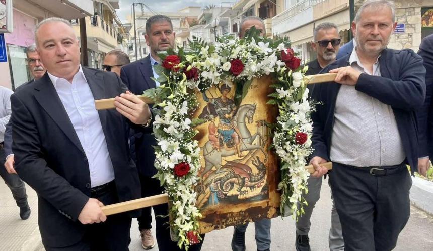 Ακολούθησε η λιτάνευση της Ιερής Εικόνας του Αγίου, με τη θερμή συμμετοχή του κόσμου, που με σεβασμό και κατάνυξη απέδωσε τιμή στον προστάτη του Περάματος.
