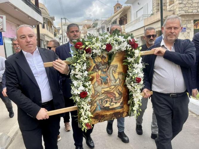 Με ιδιαίτερη λαμπρότητα και θρησκευτική κατάνυξη τιμήθηκε σήμερα 23 Απριλίου η μνήμη του Αγίου Γεωργίου, Πολιούχου Περάματος Μυλοποτάμου, της πανηγυρικής Θείας Λειτουργίας χοροστάτησε ο Πανοσιολογιώτατος Αρχιμανδρίτης Παρθένιος Καλυβιανάκης, Ηγούμενος της Ιεράς Μονής Τιμίου Προδρόμου Ατάλης–Μπαλή με τον πατήρ Ιωάννη τον εφημέριο της ενορίας. Πλήθος πιστών συνέρρευσε στον ομώνυμο Ιερό Ναό, παρουσία εκπροσώπων της Αυτοδιοίκησης και τοπικών φορέων.