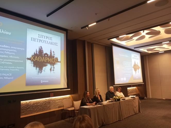 Το βιβλίο παρουσίασαν η Αντιπρόεδρος του Συλλόγου Ξενοδόχων Ρεθύμνου, πρώην Αντιδήμαρχος και τουριστικός επιχειρηματίας Πέπη Μπιρλιράκη και η αναγνώστρια Στεφανία Φραγκιαδάκη. Αποσπάσματα διάβασε η ηθοποιός Μαρία Ζαχαράκη.