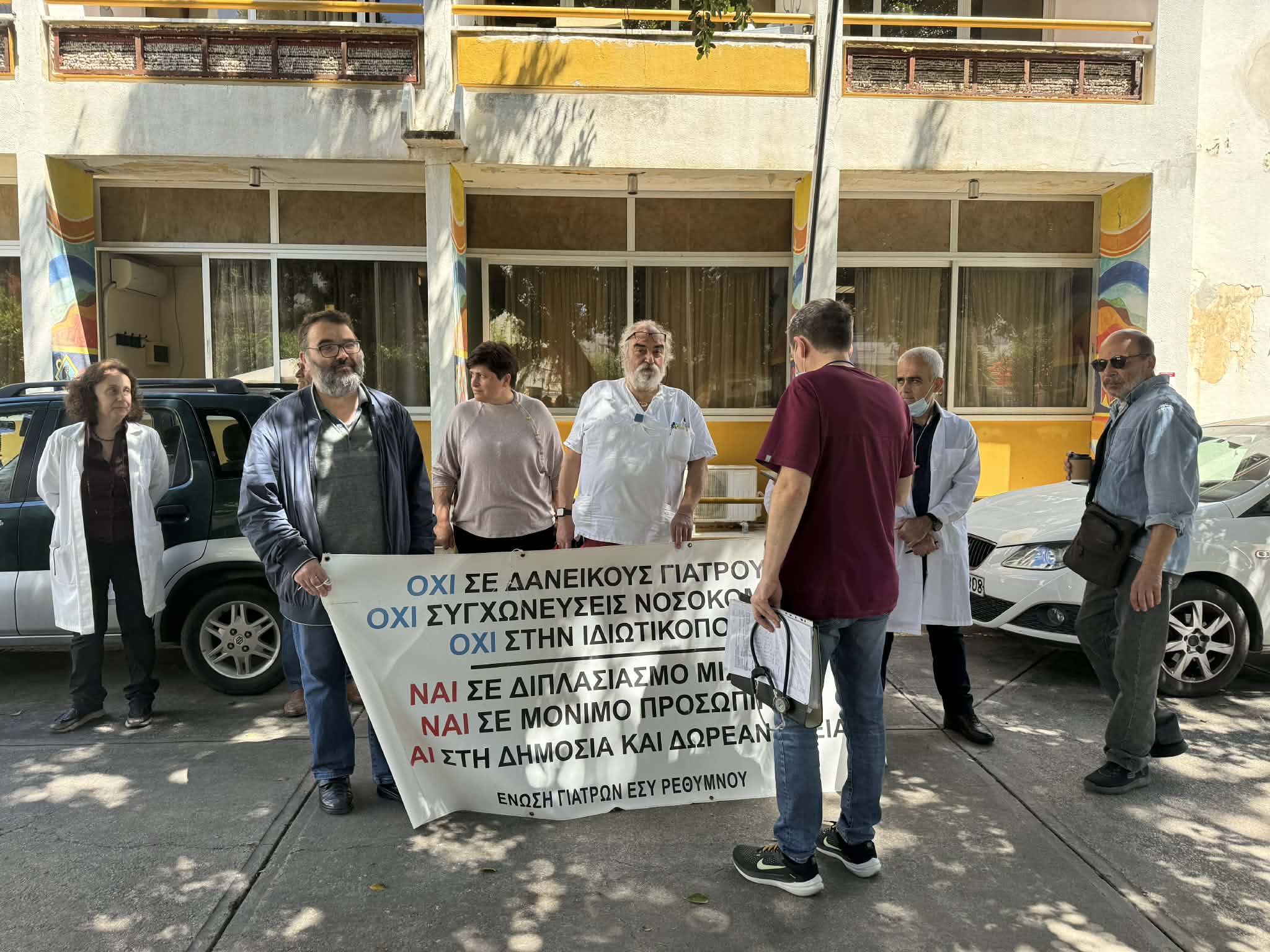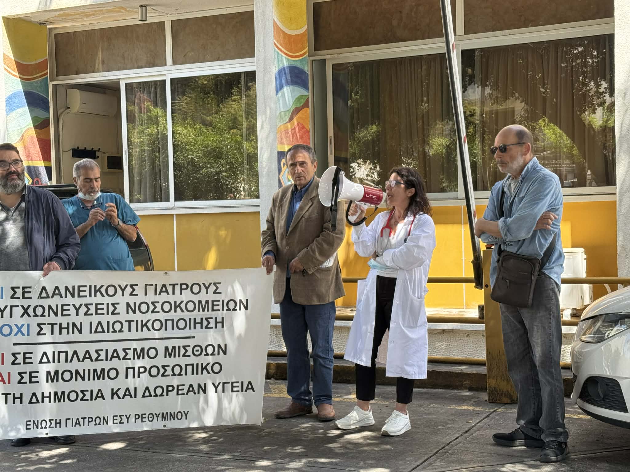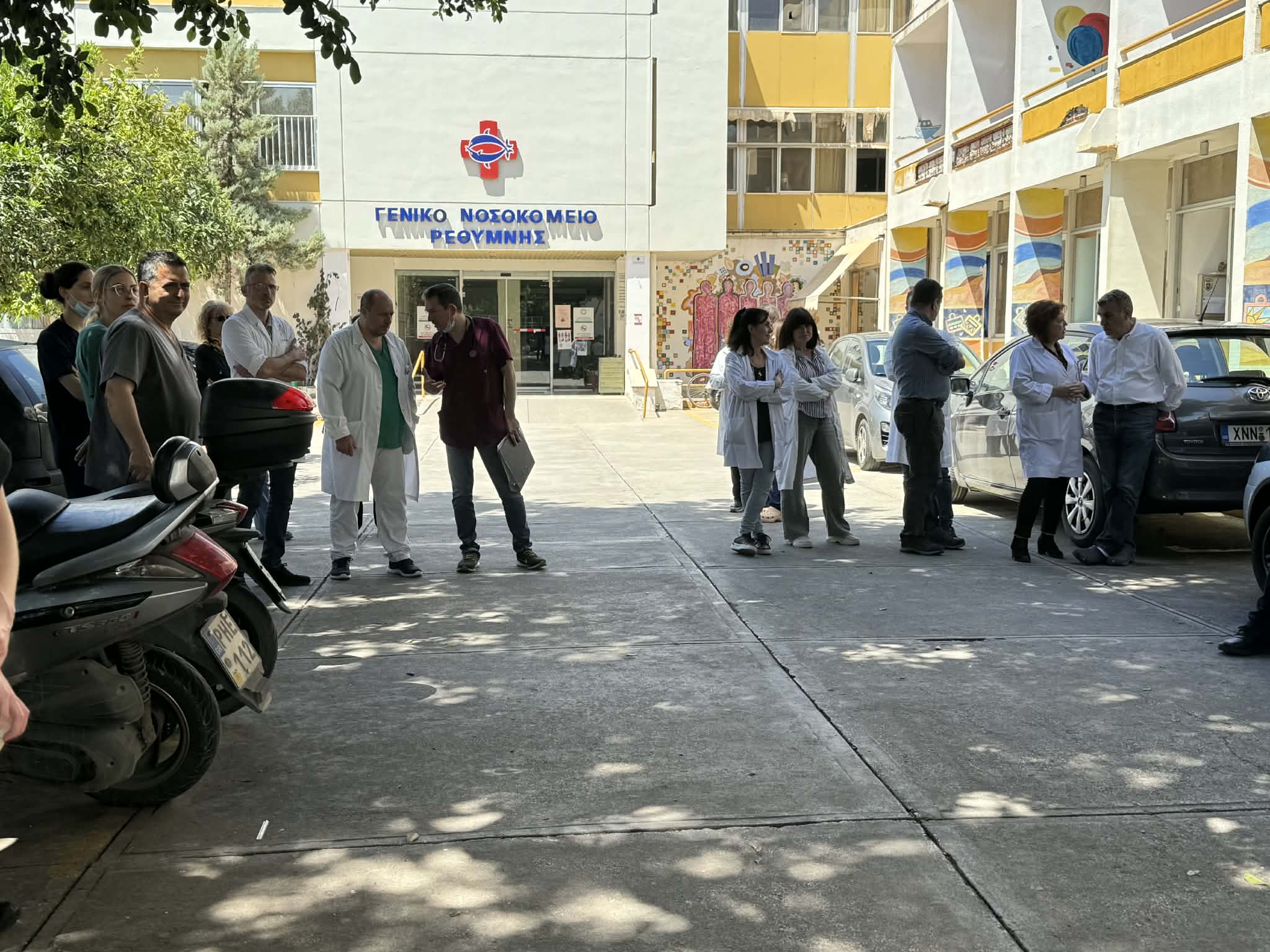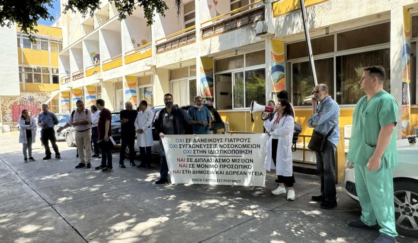 Στάση εργασίας στην πύλη του Νοσοκομείου Ρεθύμνου πραγματοποίησαν τη Δευτέρα 27 Απριλίου οι γιατροί, στέλνοντας σαφές μήνυμα για την ανάγκη άμεσης ενίσχυσης του προσωπικού και βελτίωσης των συνθηκών εργασίας. Αφορμή στάθηκε, μεταξύ άλλων, περιστατικό κατάρρευσης γιατρού εν ώρα υπηρεσίας, που ανέδειξε τη σοβαρότητα της κατάστασης.