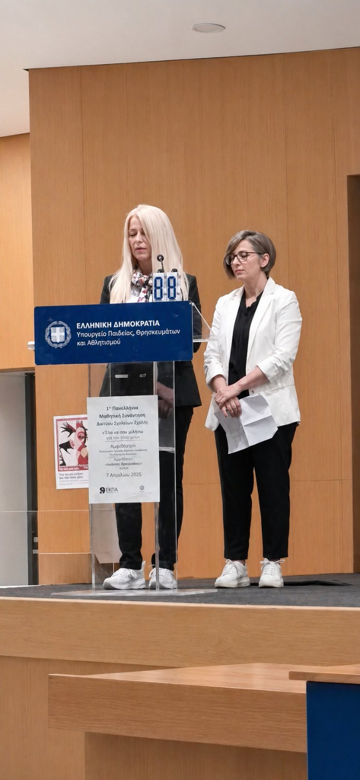 Ξεχωριστή στιγμή αποτέλεσε η παρουσίαση των μαθητριών του σχολείου μας, την Πέμπτη 23 Απριλίου 2026, στις εγκαταστάσεις του Υπουργείου Παιδείας, Θρησκευμάτων και Αθλητισμού. Με θέμα «Όλοι μαζί μπορούμε: 2ος Στόχος Βιώσιμης Ανάπτυξης (Μηδενική Πείνα)», η εισήγηση ανέδειξε με σαφήνεια τη σημασία της συνεργασίας και της αλληλεγγύης ως βασικών πυλώνων για την αντιμετώπιση σύγχρονων κοινωνικών προκλήσεων.