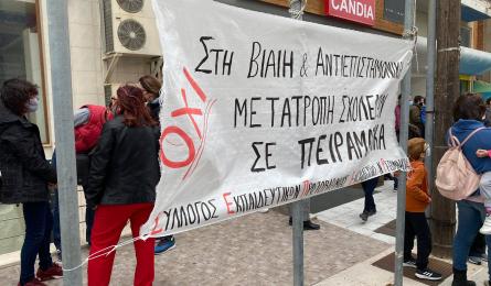 Ρέθυμνο: διαδηλώσεις και διαμαρτυρίες για την μετατροπή σχολείων σε πειραματικά Η μετατροπή σχολείων της πόλης του Ρεθύμνου σε πρότυπα πειραματικά, χωρίς την συναίνεση των εκπαιδευτικών και των συλλόγων γονέων και κηδεμόνων,... 05.04.2021 11:50