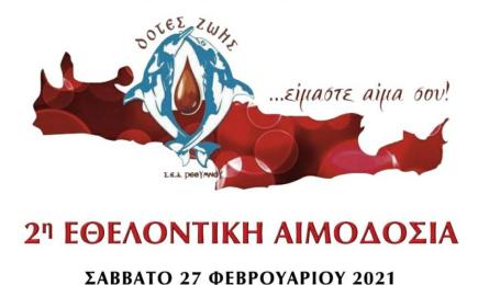 Ρέθυμνο: 2η Εθελοντική αιμοδοσία Η Ιερά Μητρόπολη Ρεθύμνης και Αυλοποτάμου, ο Ιερατικός Σύνδεσμος της Μητροπόλεως και ο Σύλλογος Εθελοντών Αιμοδοτών Νομού Ρεθύμνης "Δοτες Ζωης"θα... 19.02.2021 08:00