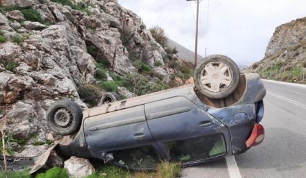 Ρέθυμνο: "Κινηματογραφική" ανατροπή αυτοκινήτου στην Κρύα Βρύση Σήμανε συναγερμός για τον απεγκλωβισμό του οδηγού. 01.02.2021 12:44