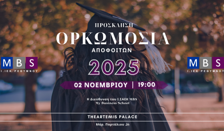 Τελετή Απονομής Πτυχίων του Ι.ΙΕΚ MBS My Business School - «Βρήκα το πρόσωπό μου» Την Κυριακή 2 Νοεμβρίου 2025 και ώρα 19:00, στο ξενοδοχείο Theartemis Palace στο Ρέθυμνο, το Ι.ΣΑΕΚ MBS My Business School του Εκπαιδευτικού... 01.11.2025 19:57