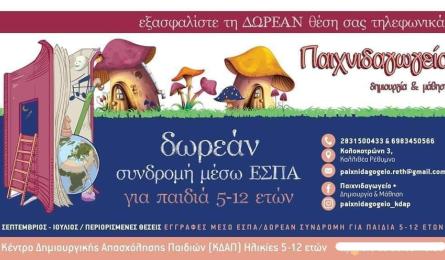 Παιχνιδαγωγείο: Δωρεάν συνδρομή μέσω ΕΣΠΑ Εξασφαλίστε τη ΔΩΡΕΑΝ θέση σας μέσω Voucher του ΕΣΠΑ για το Κέντρο Δημιουργικής Απασχόλησης Παιδιών (ΚΔΑΠ) ηλικίας 5-12 ετών ! Το πρόγραμμα... 20.07.2020 11:06