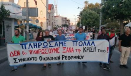 Συλλαλητήριο συνδικάτων στο κέντρο του Ρεθύμνου Με ένα μαχητικό συλλαλητήριο ένωσαν τη φωνή τους εργαζόμενοι από Δημόσιο και Ιδιωτικό τομέα απαιτώντας να μην ξαναπληρώσουν τη καπιταλιστική... 12.06.2020 08:30
