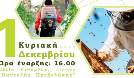 Ημερίδα μελισσοκομίας στο Ρέθυμνο Με ιδιαίτερο περιβαλλοντικό ενδιαφέρον θα πραγµατοποιηθεί ηµερίδα του Μελισσοκοµικού Συλλόγου Ρεθύµνης «ΜΕΛΙΤΤΕΥΣ» µε θέµα «Μέλισσες - Φυτοφάρµακα... 18.11.2019 07:00