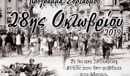 Ρέθυμνο: Πρόγραμμα Εορτασμού 28ης Οκτωβρίου 2019 Γενικός σημαιοστολισμός δημοσίων, δημοτικών, ιδιωτικών καταστημάτων και σπιτιών της πόλης του Ρεθύμνου από τις 8 το πρωί της 25ης μέχρι και τη Δύση... 18.10.2019 13:58