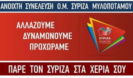 Ανοιχτή Συνέλευση της Ο.Μ. Μυλοποτάμου του ΣΥΡΙΖΑ με Α. Ξανθό και Θ. Δουλουμπέκη στις 13/10 στο Ρουμελή Μυλοποτάμου Η Οργάνωση Μελών ΣΥΡΙΖΑ Μυλοποτάμου πραγματοποιεί ανοιχτή συνέλευση την Κυριακή 13 Οκτωβρίου 2019 και ώρα 6 μμ στο Ρουμελή του Δήμου Μυλοποτάμου στην... 10.10.2019 08:30