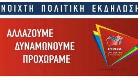 Ανοιχτή συνέλευση της Ο.Μ. ΣΥΡΙΖΑ Ρεθύμνου με Α. Ξανθό και Θ. Δουλουμπέκη Η Οργάνωση Μελών ΣΥΡΙΖΑ Πόλης Ρεθύμνου πραγματοποιεί την Παρασκευή 4 Οκτωβρίου και ώρα 7:30 μμ στην αίθουσα του Εργατικού Κέντρου Ρεθύμνου ανοιχτή... 03.10.2019 13:25