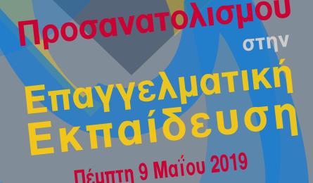 Ημέρα Προσανατολισμού για την Επαγγελματική Εκπαίδευση στο Σπίτι του Πολιτισμού Σας προσκαλούμε στην Ημέρα Προσανατολισμού για την Επαγγελματική Εκπαίδευση, την Πέμπτη 9 Μαΐου 2019 στις 9:00, στο Σπίτι του Πολιτισμού. Στην... 01.05.2019 10:45