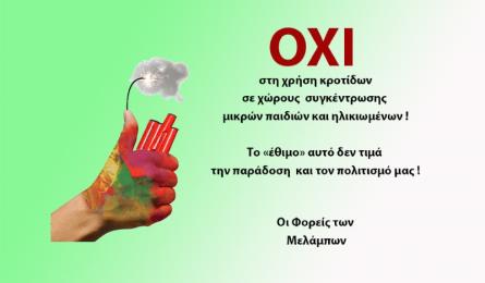 «Όχι στις κροτίδες και στα βεγγαλικά» από τους φορείς των Μελάμπων Εμείς οι φορείς των Μελάμπων, θέλουμε να επισημάνουμε το αρνητικό και επικίνδυνο έθιμο της χρήσης κροτίδων κατά την περίοδο της Μεγάλης Εβδομάδας και... 24.04.2019 12:31