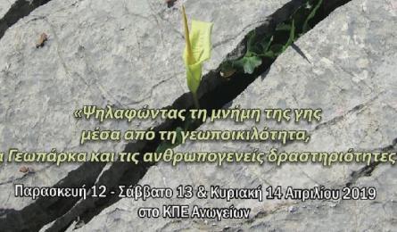Ψηλαφώντας τη μνήμη της γης - Τριήμερο επιμορφωτικό σεμινάριο στα Ανώγεια από το ΚΠΕ Το ΚΠΕ Ανωγείων, διοργανώνει σε συνεργασία με τα Γραφεία Σχολικών Δραστηριοτήτων των Διευθύνσεων της χώρας, με την Περιφέρεια Κρήτης, τον Δήμο... 11.04.2019 14:15