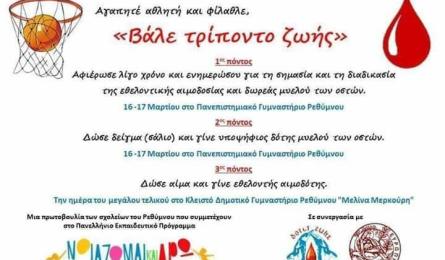 «Βάλε τρίποντο ζωής» στο Εργασιακό Πρωτάθλημα Μπάσκετ Ρεθύμνου Μία ξεχωριστή συνεργασία με τα σχολεία του "Νοιάζομαι και δρω" :16ο Δημοτικό Ρεθύμνου, Πειραματικό Γυμνάσιο Πανεπιστημίου Κρήτης και 4ο ΓΕΛ Ρεθύμνου... 14.03.2019 23:22