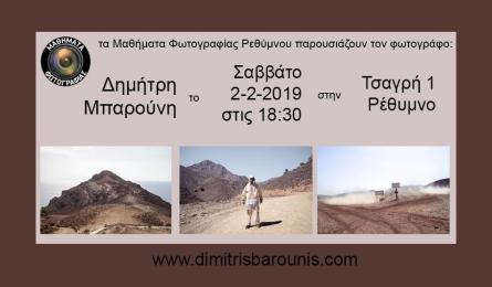 Ο Δημήτρης Μπαρούνης στα Μαθήματα Φωτογραφίας Ρεθύμνου Θα έχουμε την ευκαιρία να δούμε την ξεχωριστή δουλειά του Δημήτρη Μπαρούνη στην παρουσίαση που διοργανώνουν τα Μαθήματα Φωτογραφίας Ρεθύμνου το... 27.01.2019 13:21
