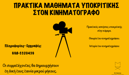 Για πρώτη φορά στο Ρέθυμνο, μαθήματα υποκριτικής στην κάμερα Ο βραβευμένος σκηνοθέτης ταινιών μικρού μήκους Γιάννης Μπλέτας θα διδάξει υποκριτική στον κινηματογράφο, όπως επίσης και ιστορία σε ένα νέο ειδικά... 17.01.2019 12:40