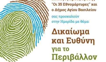 Ημερίδα «Δικαίωμα και Ευθύνη για το Περιβάλλον» Κυριακή 16 Δεκεμβρίου 2018 Κρύα Βρύση Δήμου Αγίου Βασιλείου, Παλαιό Δημοτικό Σχολείο Το Πανεπιστήμιο Κρήτης-Μουσείο Φυσικής Ιστορίας Κρήτης... 11.12.2018 07:45