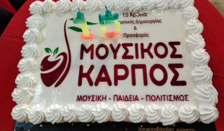 15 Χρόνια Πολιτιστικής Δημιουργίας και Προσφοράς από το Μουσικό Καρπό Ένας σημαντικός σταθμός, μια γιορτή μνήμης αλλά και πορείας, σηματοδότησε τη συμπλήρωση 15 χρόνων συνεχούς παρουσίας και δημιουργικής προσφοράς... 07.01.2026 11:23