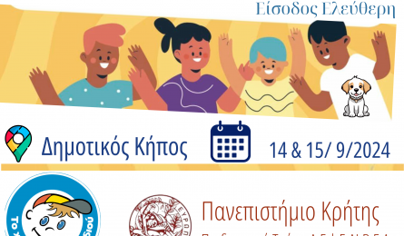 1η Γιορτή Παιδιού στο Ρέθυμνο Το "Χαμόγελο του Παιδιού" σε συνεργασία με το Πανεπιστήμιο Κρήτης | Παιδαγωγικό Τμήμα Δ.Ε |Ε.ΔΙ.Β.Ε.Α, στο πλαίσιο του μνημονίου συνεργασίας που... 09.09.2024 10:02