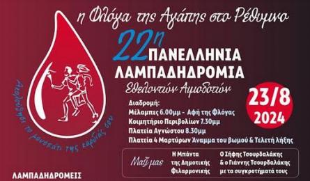 Η Φλόγα Αγάπης στο Ρέθυμνο, στις 23 Αυγούστου 2024 22η ΛΑΜΠΑΔΗΔΡΟΜΙΑ ΕΘΕΛΟΝΤΩΝ ΑΙΜΟΔΟΤΩΝ ΝΟΜΟΥ ΡΕΘΥΜΝΟΥ ΚΡΗΤΗΣ 08.08.2024 16:24