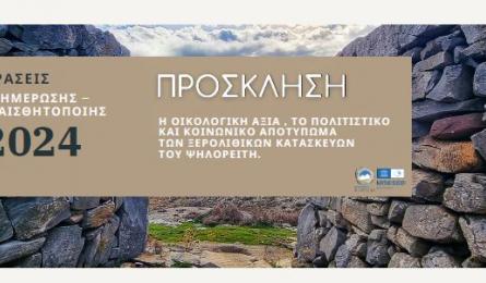 Ανοιχτή Εκδήλωση για την οικολογική αξία το κοινωνικό και πολιτιστικό αποτύπωμα των Μιτάτων και της Ξερολιθιάς στον Ψηλορείτη Το Δίκτυο Ιδαίων Δήμων στο πλαίσιο δράσεων για την ανάδειξη και την προστασία της ξερολιθιάς του Ψηλορείτη, σας προσκαλεί στην πρώτη ανοιχτή θεματική... 09.07.2024 13:16