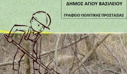 Ανακοίνωση του Αντιδημάρχου Πολιτικής Προστασίας Βαγγέλη Καπετανάκη για τον καθαρισμό οικοπεδικών και λοιπών ακάλυπτων χώρων εντός οικισμών Δήμου Αγίου Βασιλείου Εν όψει της αντιπυρικής περιόδου, από 1η Μαΐου έως 31η Οκτωβρίου 2024, και σύμφωνα με την, Υπ. Αρ. 20/2023 Πυροσβεστική Διάταξη (ΦΕΚ 2549/15-04-2023)... 17.04.2024 19:13