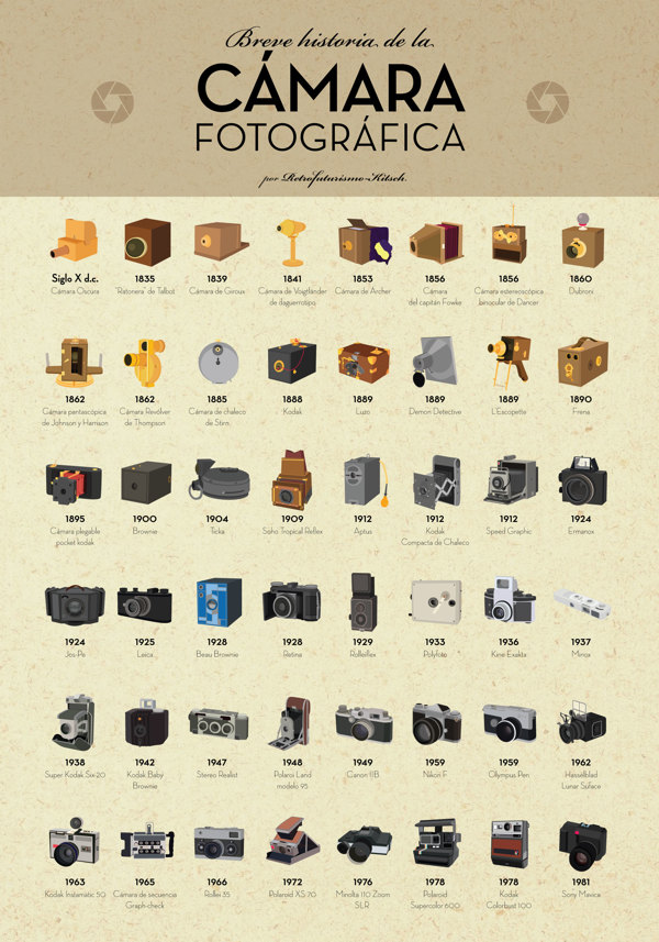 Στο infographic της εταιρείας Retrofuturismo Kitsch, απεικονίζονται οι διάφορες φωτογραφικές μηχανές 150 χρόνων, φτάνοντας μέχρι και το 1981, παρουσιάζοντας τον προ-ψηφιακό κόσμο της φωτογραφίας.