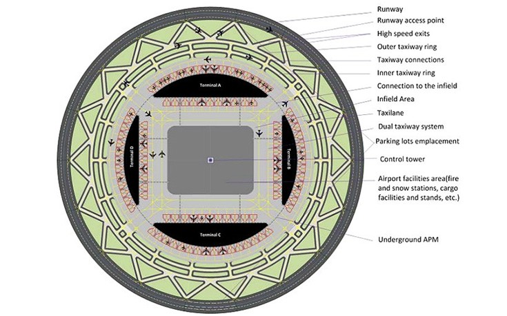 Η πρωτότυπη ιδέα του Henk Hesselink αποτελείται από έναν κυκλικό διάδρομο διαμέτρου 3,5 χιλιομέτρων που περιβάλλει το τερματικό κτίριο και λόγω του σχήματός του, οι πτήσεις θα πραγματοποιούνται κανονικά ανεξάρτητα από τις συνθήκες των ανέμων.