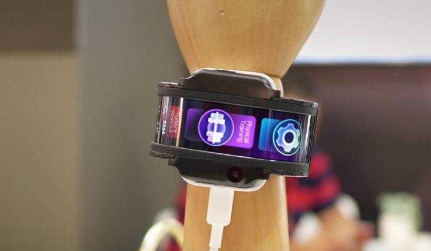Στην καρδιά της υπερφιλόδοξης αυτής προσπάθειας βρίσκεται μια εύκαμπτη οθόνη αφής OLED 4 ιντσών με ανάλυση 960x192. Σύμφωνα με την εταιρία, η εύπλαστη οθόνη αντέχει να καμφθεί ακόμα και 100.000 φορές χωρίς να παρουσιάσει πρόβλημα.