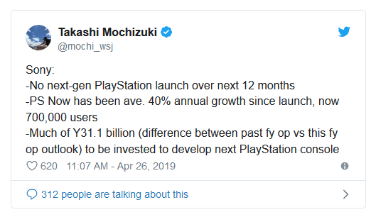 Τώρα, η εταιρία αποκάλυψε τα οικονομικά της αποτελέσματα για το πιο πρόσφατο τρίμηνο του οικονομικού της έτους και στο πλαίσιο αυτό τα στελέχη της αποκάλυψαν και μια νέα πληροφορία για το PlayStation 5. Πιο αναλυτικά, η Sony δήλωσε επίσημα πως το PS5 θα κυκλοφορήσει μετά τον Απρίλιο του 2020, όπως μεταφέρει ο Takashi Mochizuki, δημοσιογράφος του Wall Street Journal.