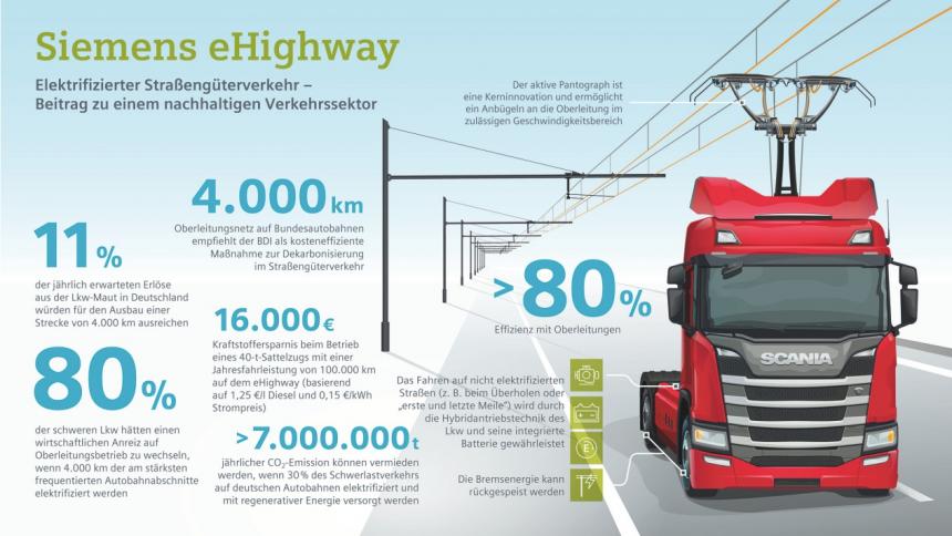 Αυτοί οι αυτοκινητόδρομοι ονομάζονται eHighways και η πρώτη δοκιμή έγινε στη Σουηδία το 2016. Στη Γερμανία, μόλις 5 φορτηγά θα κινούνται στο ηλεκτρικό τμήμα του Autobahn για αρχή, το οποίο εξυπηρετεί περίπου 35.000 οχήματα βαρέως τύπου ημερησίως. Οι Γερμανοί ελπίζουν πως το σύστημα θα ενθαρρύνει τις εταιρίες να κάνουν τη μετάβαση σε ηλεκτρικά οχήματα, μετακινώντας φορτία για μεγαλύτερη απόσταση και ταυτόχρονα μειώνοντας τις εκπομπές ρύπων.