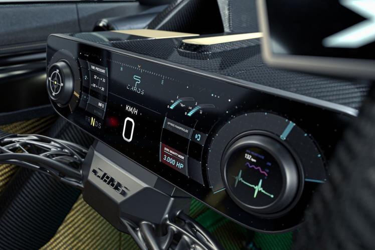 Το πίσω μέρος του “Χάους” είναι λιγότερο υπερβολικό, αλλά εξίσου επιβλητικό, καθώς κυριαρχούν τέσσερις κεντρικές απολήξεις της εξάτμισης, με LED φωτιστικά σώματα να υπάρχουν και στις δύο πλευρές. Στη μέση, διακρίνεται ο μεγάλος διαχύτης, με το κάτω μέρος του να που μοιάζει με αυτόν της Ferrari Enzo. Παρεμπιπτόντως, το παρμπρίζ φαίνεται να αποτελεί ένα σύνολο με τα δύο πλευρικά παράθυρα.