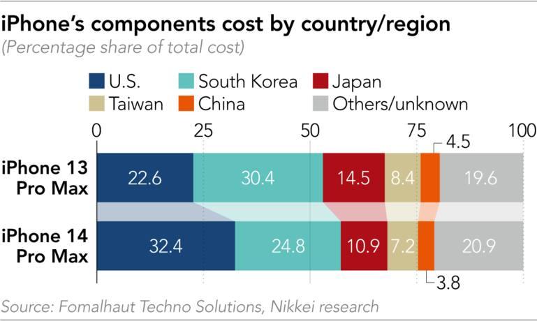 Ένας άλλος λόγος για την αύξηση της τιμής της παραγωγής είναι οι νέοι αισθητήρες CMOS της Sony που είναι 30% μεγαλύτεροι σε μέγεθος, αλλά και 50% ακριβότεροι, φτάνοντας το αρχικό κόστος των 15 δολαρίων. Επίσης, όλα τα εξαρτήματα για τα iPhone 14 από εταιρίες με έδρα τις ΗΠΑ συμβιβάζουν σχεδόν το ένα τρίτο του συνολικού κόστους και αυξάνονται κατά 10%, σε σύγκριση με το 2021.