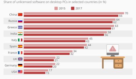 Στις υψηλότερες θέσεις η Ελλάδα στη χρήση «πειρατικού» λογισμικού Η Ελλάδα εξακολούθησε να κατέχει μία από τις υψηλότερες θέσεις στη σχετική κατάταξη όσον αφορά τη χρήση «πειρατικού» λογισμικού το 2017 καθώς το 61%... 18.06.2018 09:45