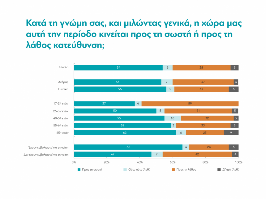 Η πλειοψηφία των Ελλήνων εξακολουθούν να πιστεύουν ότι στη χώρα τα πράγματα πηγαίνουν "προς τη σωστή κατεύθυνση".